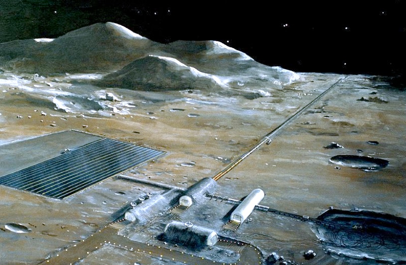 Lunar base with mass driver and solar collector